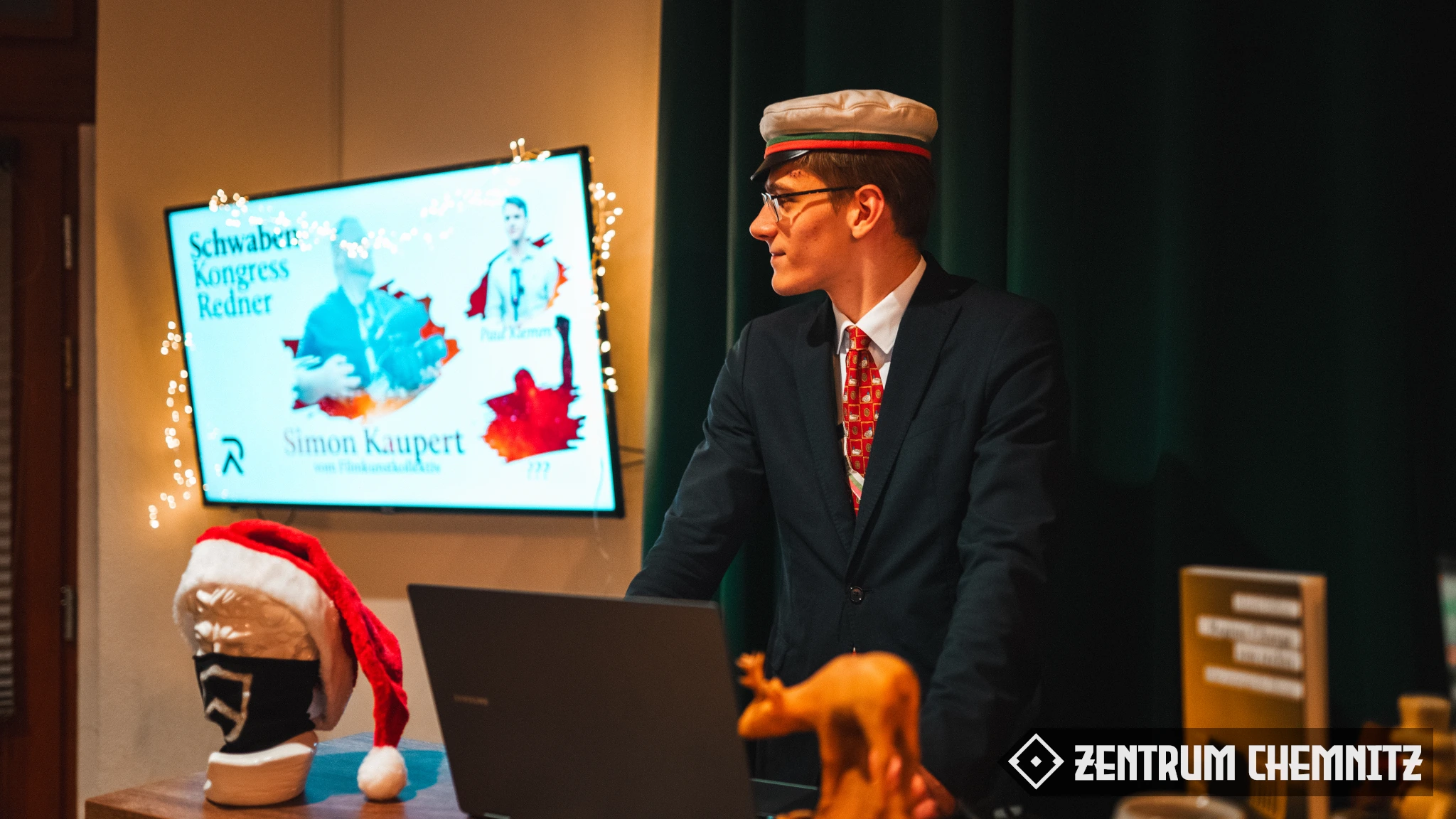 🎄 Am vergangen Freitag begrüßten wir den Burschenschafter und identitären Aktivisten Adrian im weihnachtlich dekorierten Zentrum.